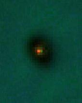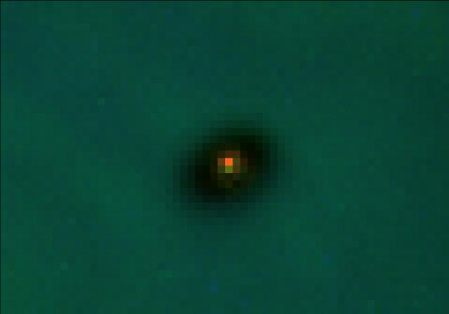 Right: an even closer view of the dark clump in the top of the center image. Note that these images have been rotated so that north is up; the full-size HST images have north to the right.