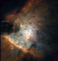 Stars form when giant molecular clouds collapse under their own gravity. When enough mass accumulates to form hot, massive stars, the results can be spectacular. The hot star will produce enough radiation and stellar wind to blow a hole in the cloud from which it formed. If the star is massive enough, it will actually rip apart and ionize its parental cloud, even as it's forming new clouds. The Hubble Space Telescope has provided us with many impressive examples of just such an event. Here are two of them.