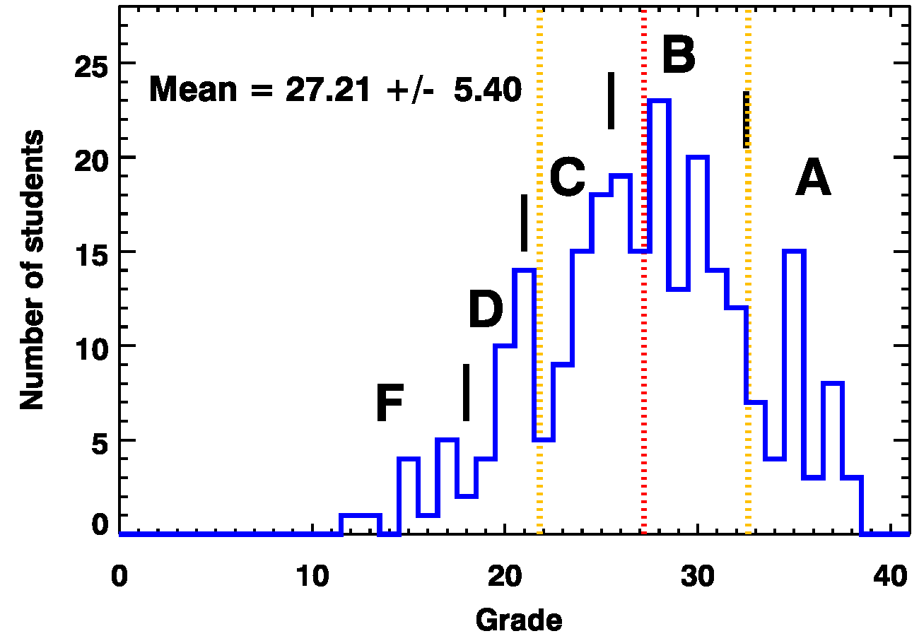 As before, the grades assigned to exam scores are only an approximate guide. Final course grades will be based on numerical results, not these letter grades.